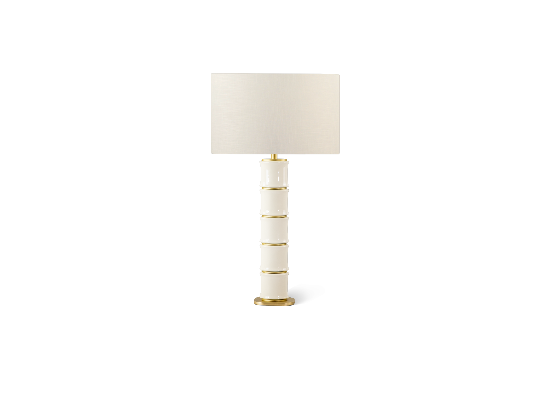 Luminária de mesa lacada com base e detalhes em latão escovado.